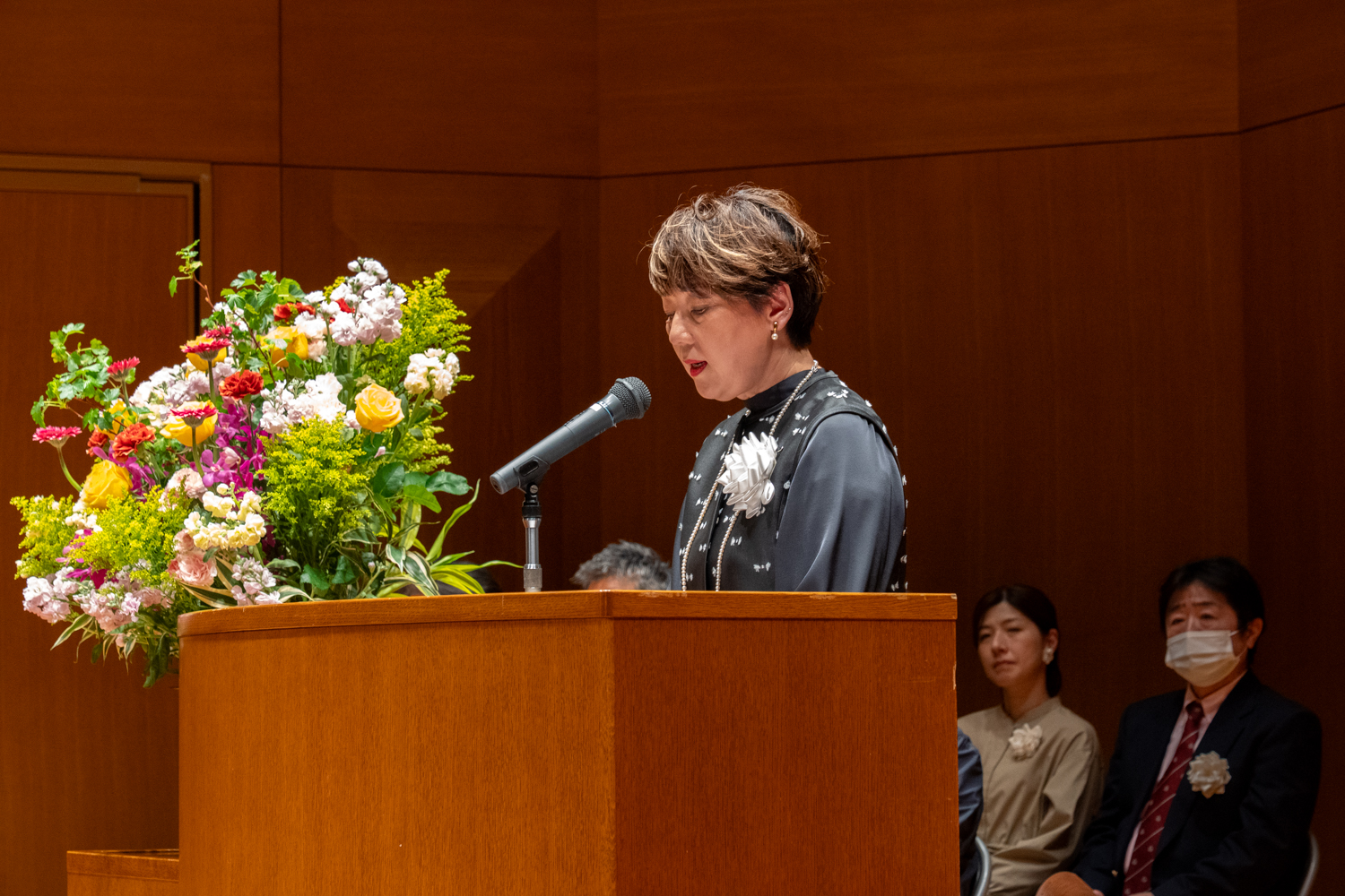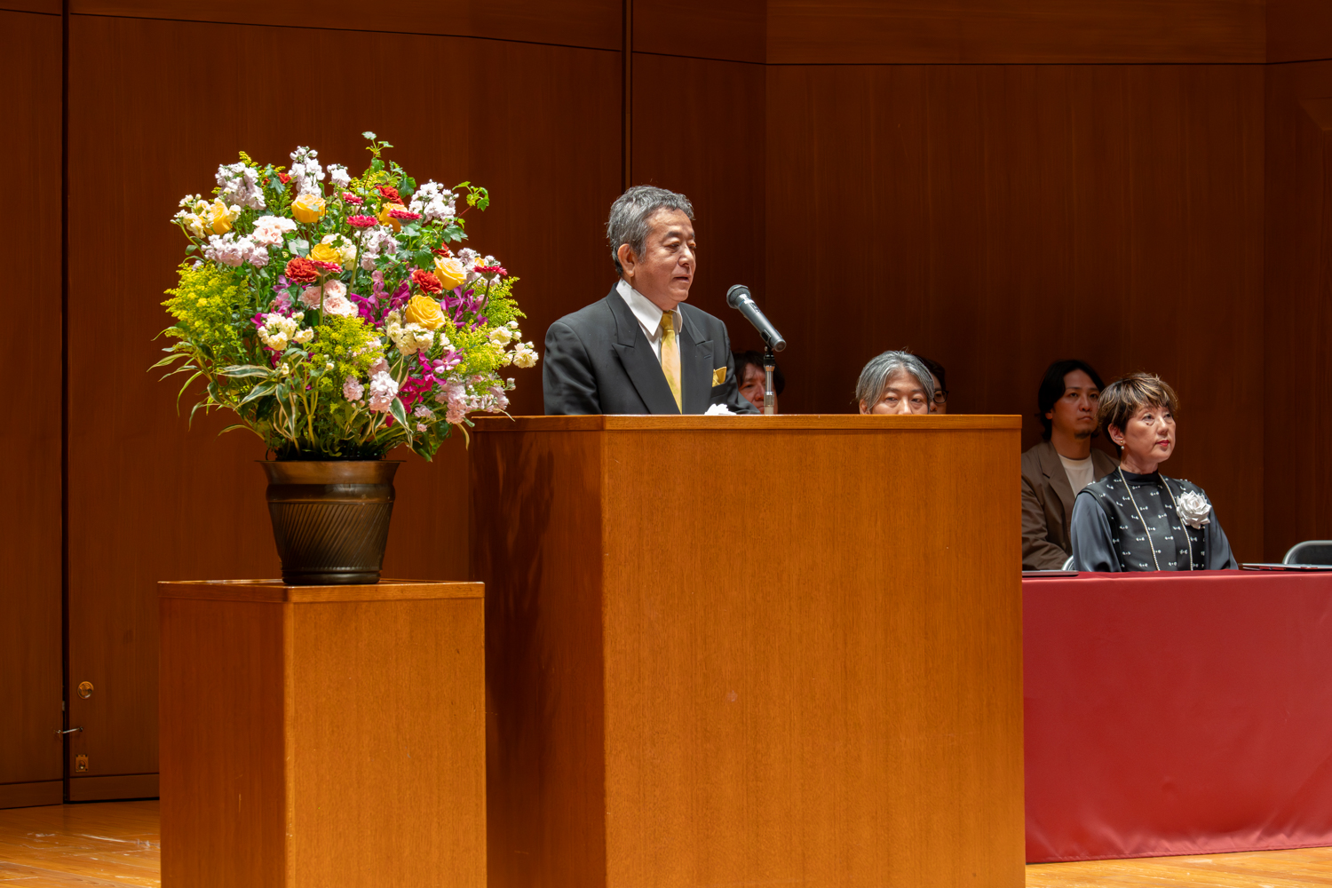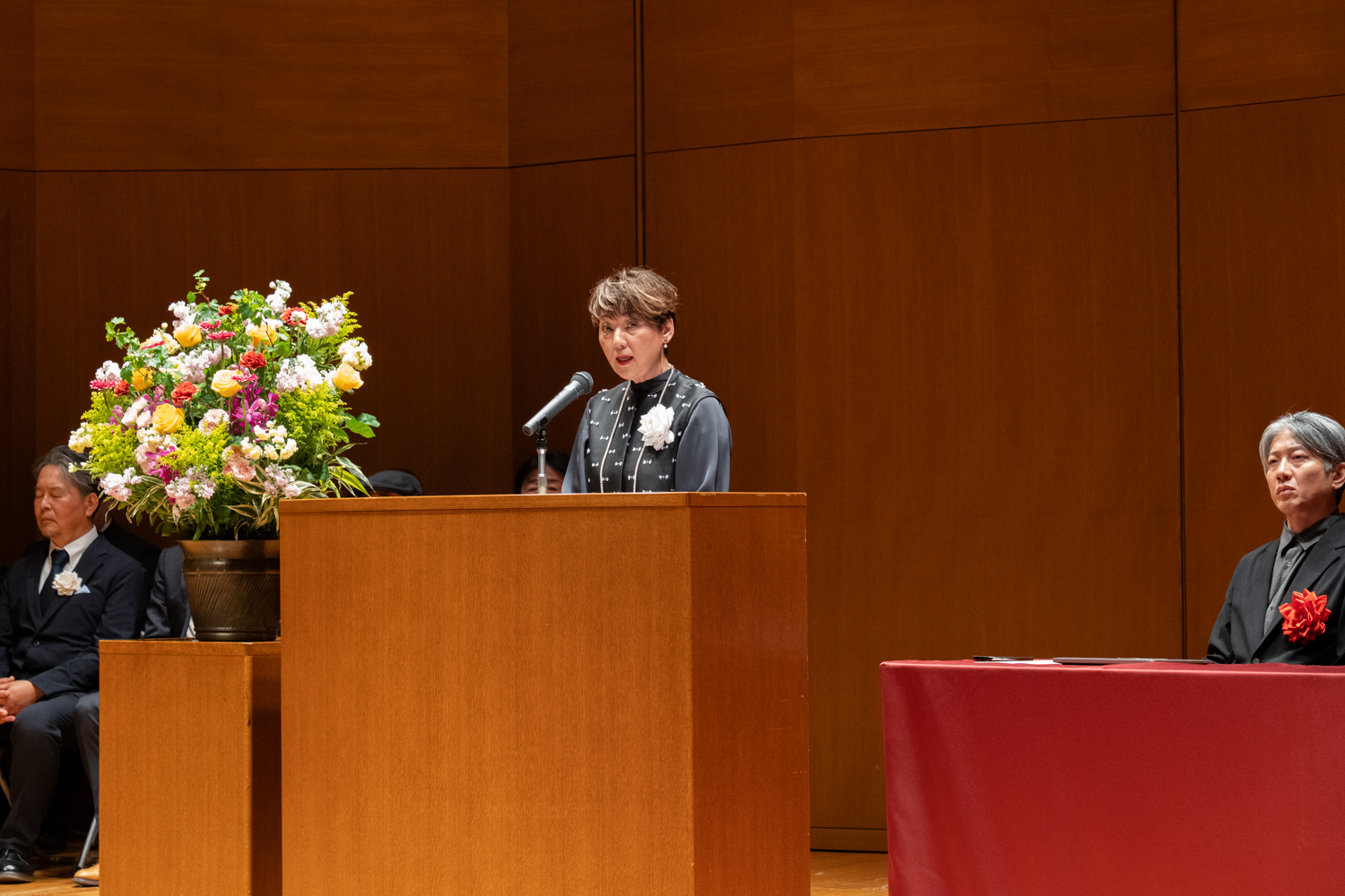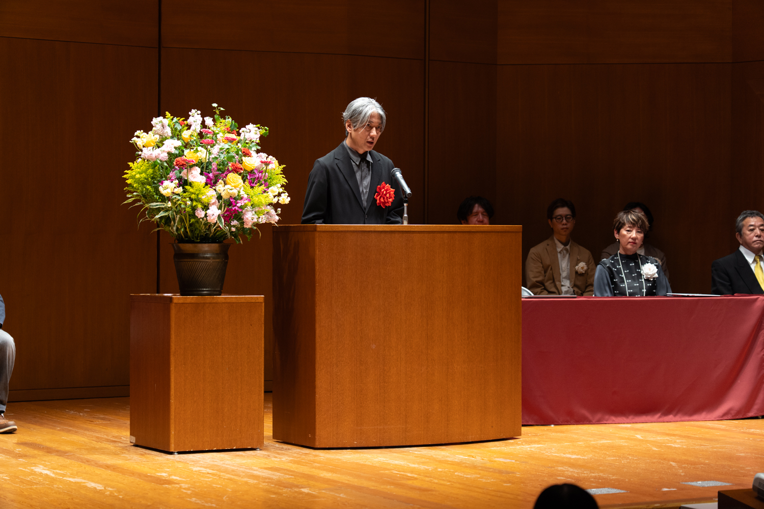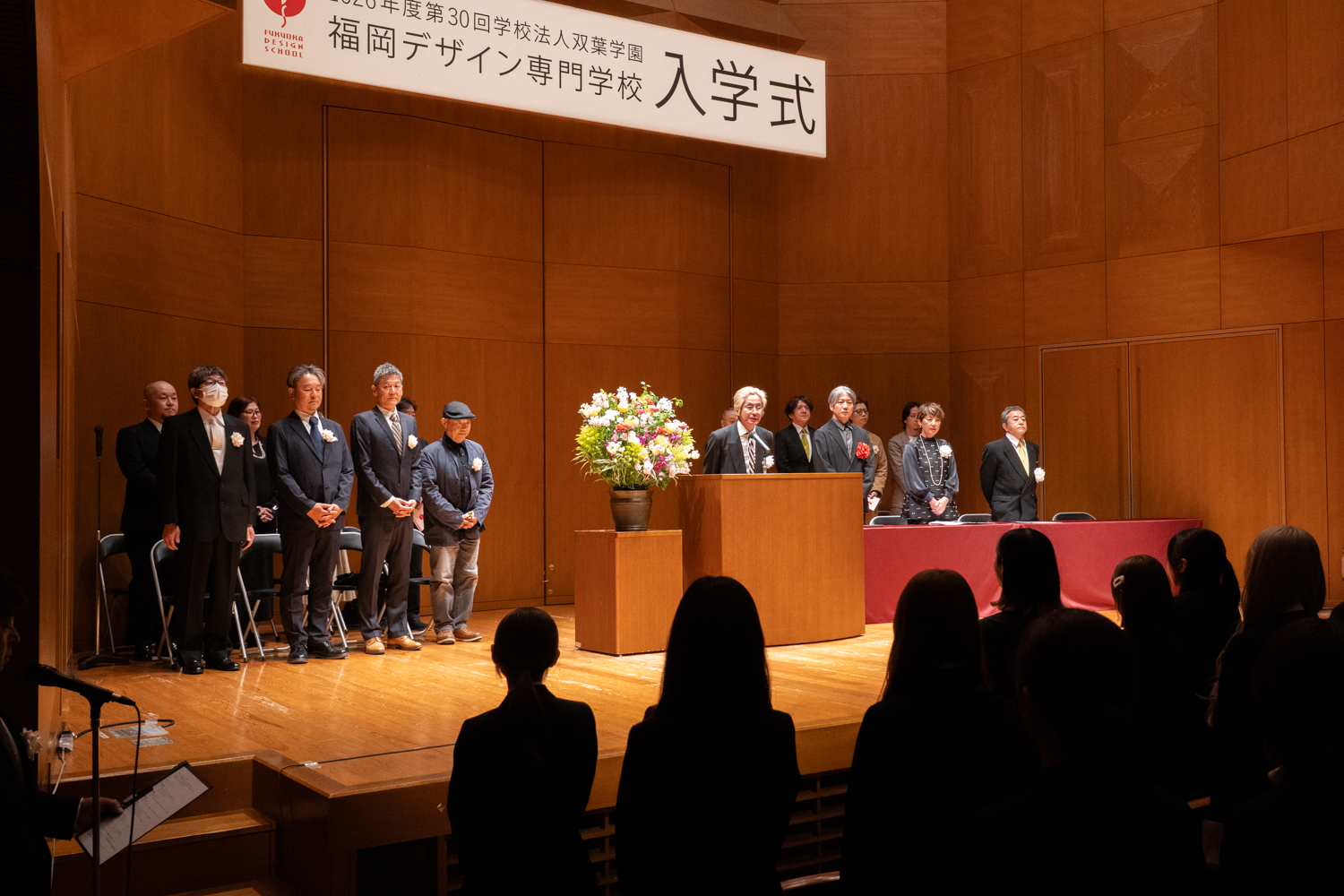 学校長・理事長挨拶、来賓祝辞では、プロダクトデザイナーであり、当校の特別非常勤講師を勤めていただいている