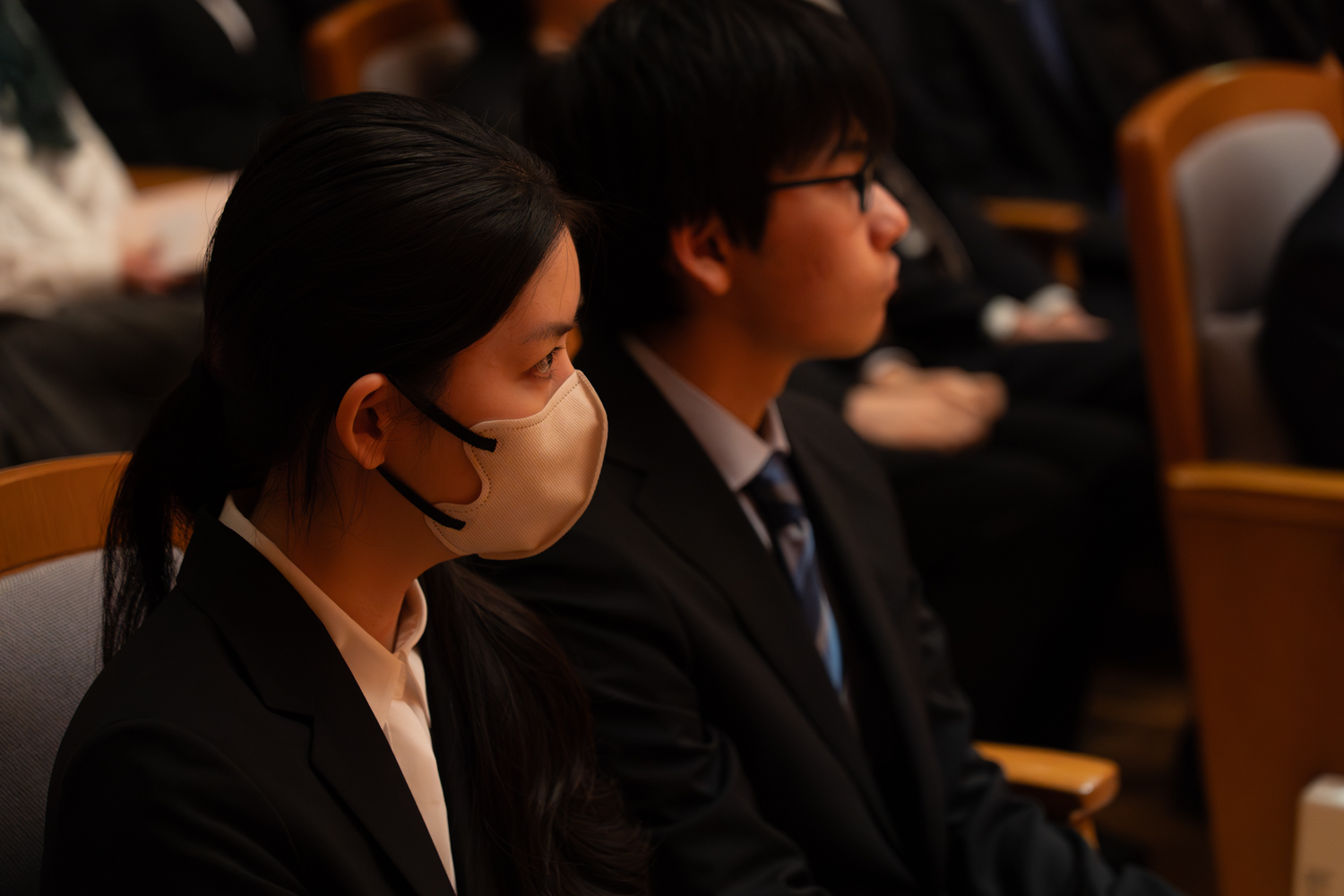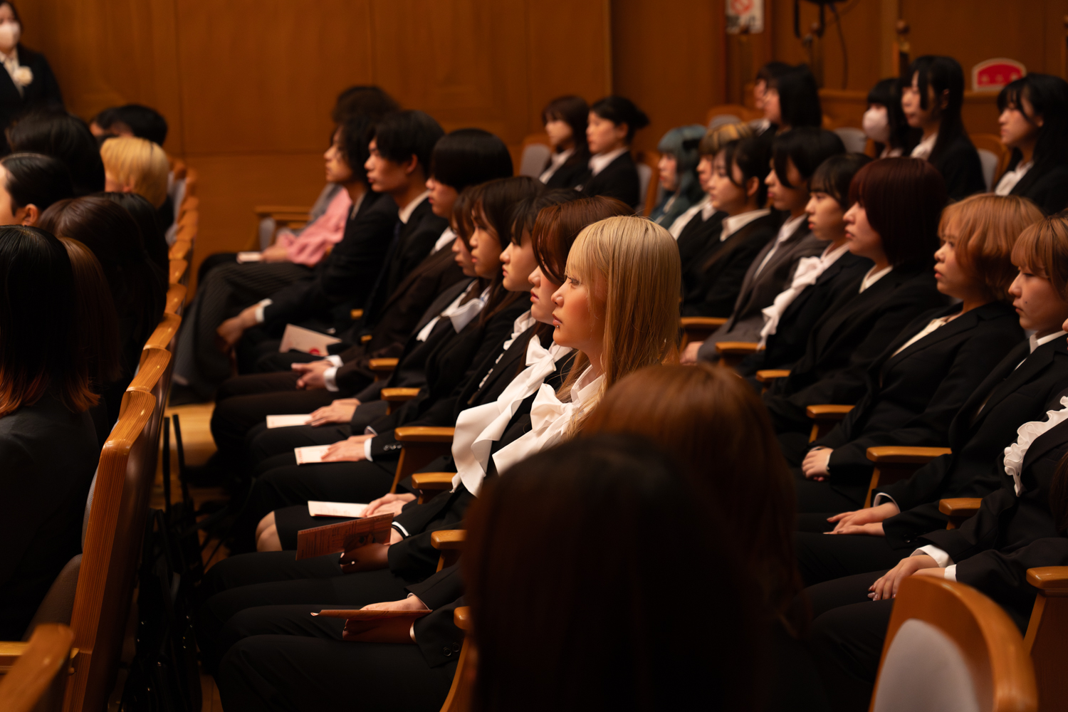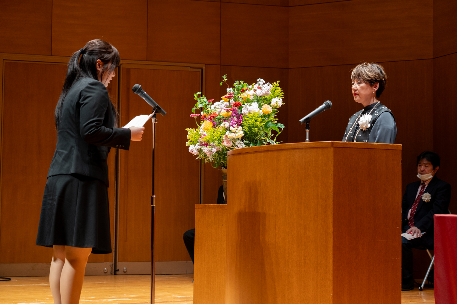 新入生代表として、上野さんの誓いの言葉で結び、デザインの学びへの努力を誓いました。