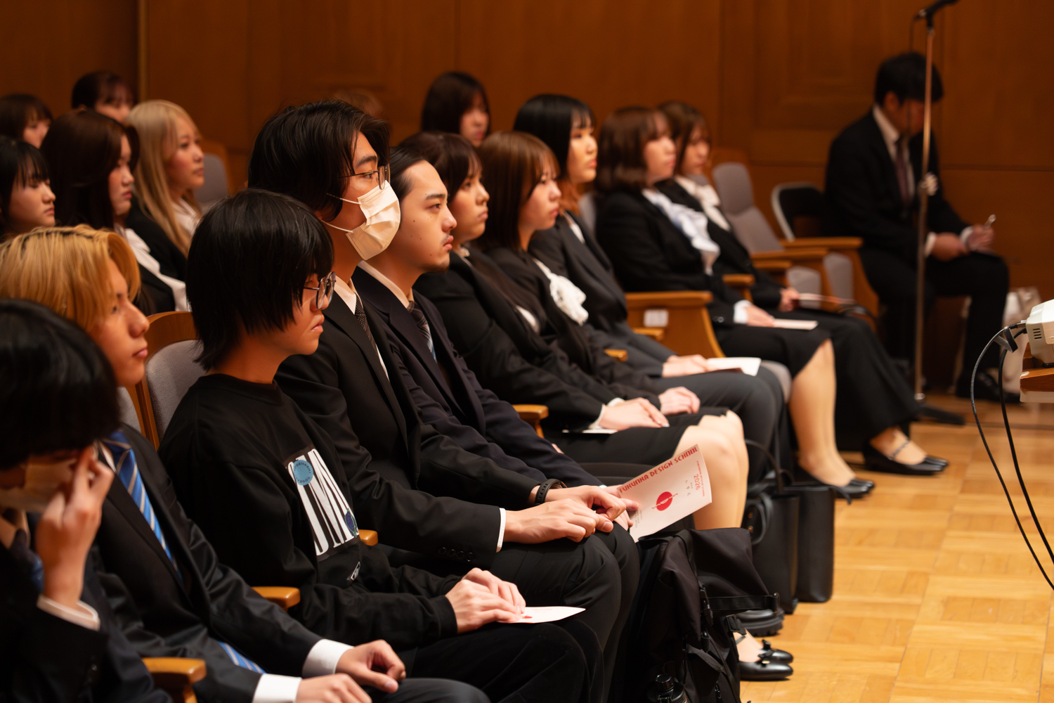 保護者の皆さまを迎え、デザインを学ぶ志をともに祝いました。